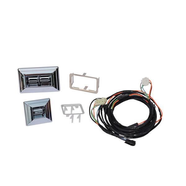 Kit includes: 2 regulators (left & right side), 2 new ACI motors, completed wire harness, standard chrome switches for door placement and conduit to protect the wires going thru the door.