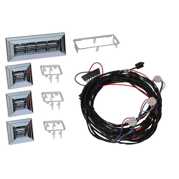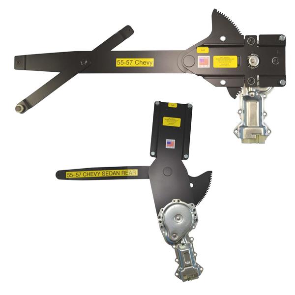 Kit includes: 4 regulators (left & right front, left & right rear), 4 new ACI motors, completed wire harness, Standard chrome switches for door placement and conduit to protect the wires going thru the doors.