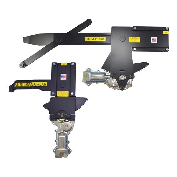 Kit includes: 4 regulators (left & right front, left & right rear), 4 new ACI motors, completed wire harness, black switches for console placement and conduit to protect the wires going thru the door.