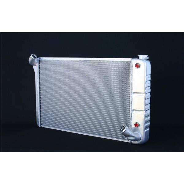 This radiator is for all 69-72 350 small block Corvettes with automatic transmission and/or AC . This "direct fit" aluminum radiator features factory type press formed end tanks, dual row core, serpentine fins, and the factory type upper and lower channels. This radiator will provide 30% more cooling than the stock copper unit and half the weight. It is also epoxy free. It will fit into the stock core support and uses the original factory hoses. Absolutely no modifications are required.