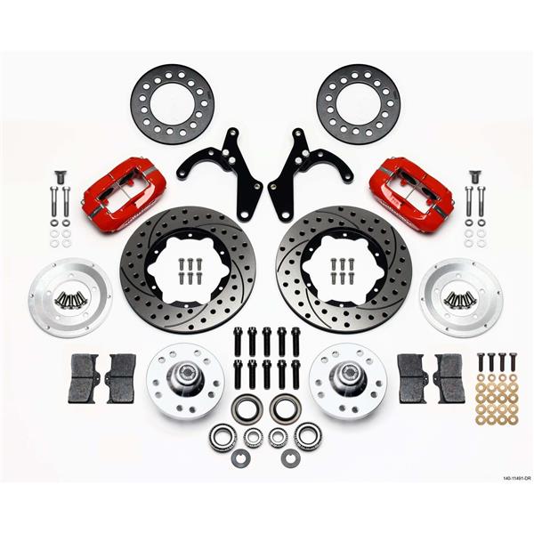 Wilwood's new limited offset FDL Pro-Series Front Hub Kits offer disc brake upgrade solutions for both OEM Disc & Drum spindles. They have completely redesigned their Pro Series line of brake kits using a larger 11 rotor and new forged aluminum hubs with the express purpose of maintaining the factory wheel position. Based on the venerable forged billet Dynalite caliper, these versatile kits are easily optioned to suit the braking requirements and style preferences for a daily driver, serious competition, or the most discriminating show enthusiast. Most vehicle applications require no modifications for installation, and provide plenty of clearance inside popular 15" wheels. FDL Pro-Series kits can be used with either manual or power boost master cylinders. Kits come complete with calipers, rotors, hub assembly, brackets and hardware.