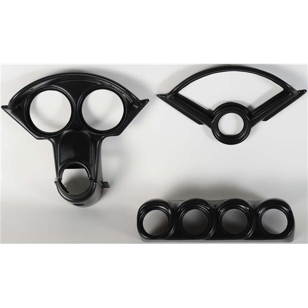 ABS UV Resistant plastic dash panel comes pre-drilled with 3 3/8 for the Speedo and Tach. The 4 smaller holes are 2 1/16.