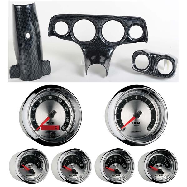 ABS UV Resistant plastic dash panel comes pre-drilled with 3 3/8 for the Speedo and Tach. The 4 smaller holes are 2 1/16.