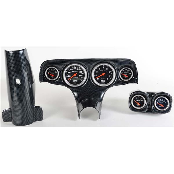 ABS UV Resistant plastic dash panel comes pre-drilled with 3 3/8 for the Speedo and Tach. The 4 smaller holes are 2 1/16.