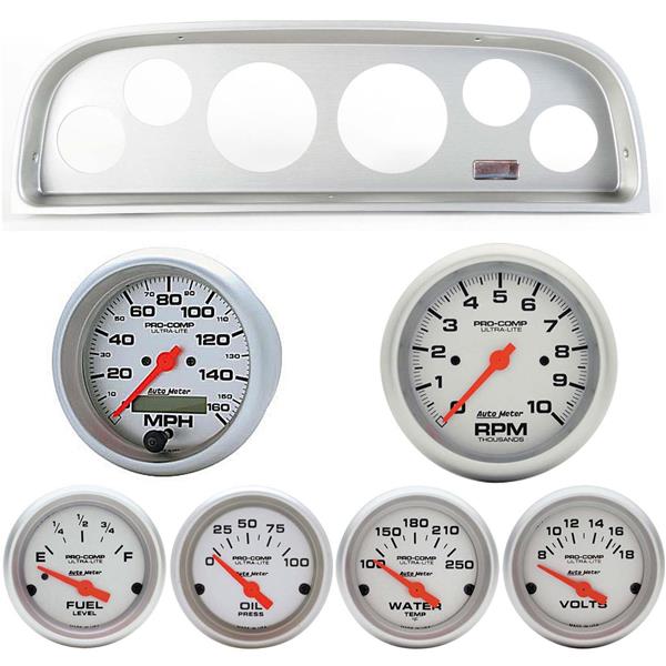 60-63 Chevy Truck Silver Dash Carrier w/Auto Meter Ultra Lite Electric Gauges
