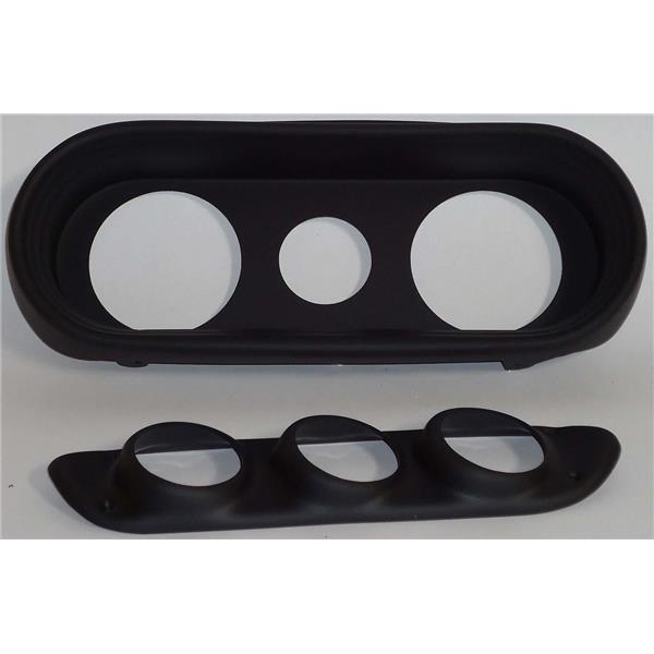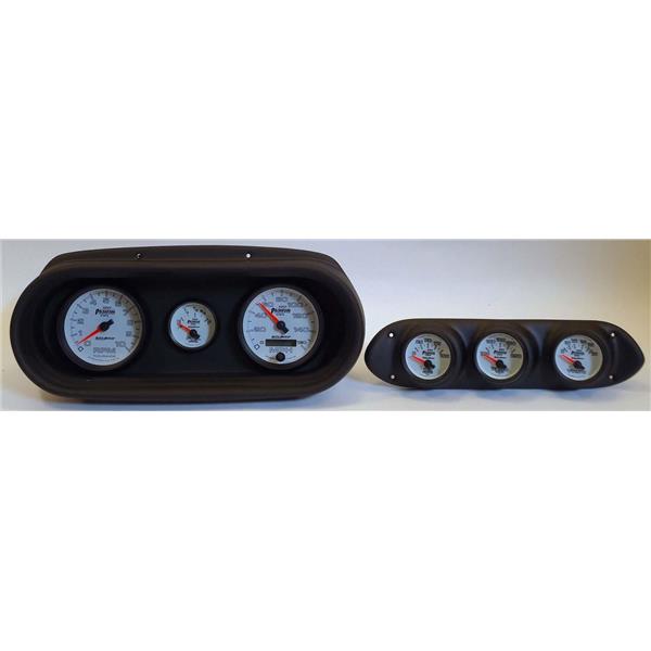ABS UV Resistant plastic dash panel comes pre-drilled with 3 3/8 for the Speedo and Tach. The 4 smaller holes are 2 1/16.