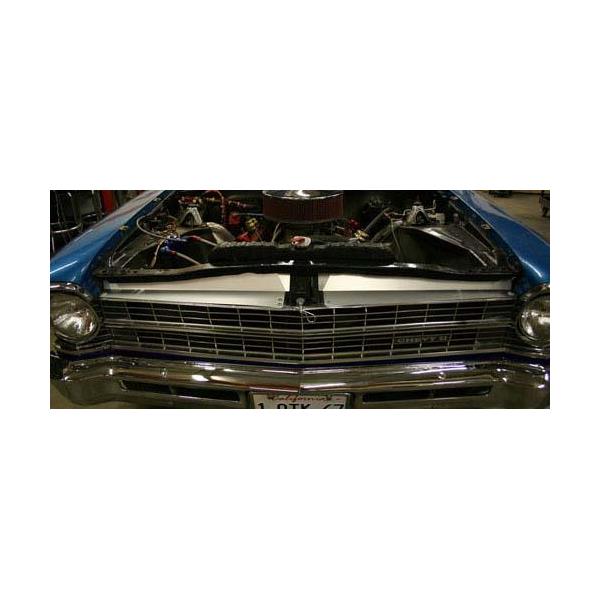 1963 Chevrolet Chevy II / Nova with Nova Design Black Anodized Radiator Filler Panel part # 63NO-02B