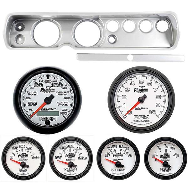 ABS UV Resistant plastic dash panel comes pre-drilled with 5 Inch for the Speedo and Tach. The 4 smaller holes are 2 1/16.
