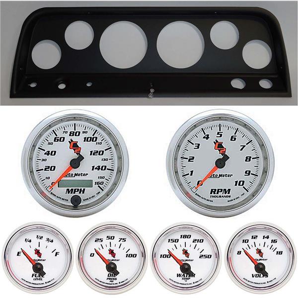 ABS UV Resistant plastic dash panel comes pre-drilled with 3 3/8 for the Speedo and Tach. The 4 smaller holes are 2 1/16.