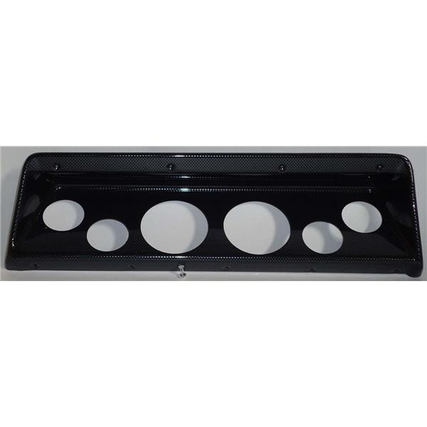 ABS UV Resistant plastic dash panel comes pre-drilled with 3 3/8 for the Speedo and Tach. The 4 smaller holes are 2 1/16.