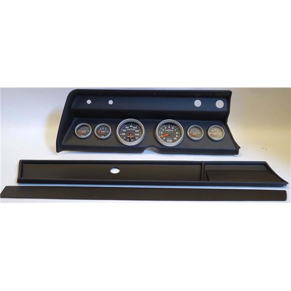 ABS UV Resistant plastic dash panel comes pre-drilled with 3 3/8 for the Speedo and Tach. The 4 smaller holes are 2 1/16.
