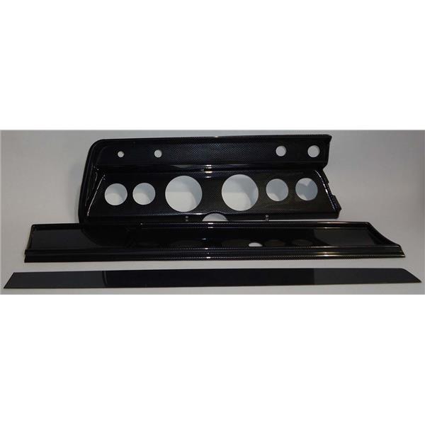 ABS UV Resistant plastic dash panel comes pre-drilled with 3 3/8 for the Speedo and Tach. The 4 smaller holes are 2 1/16.