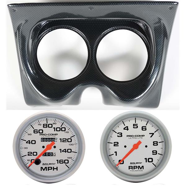 ABS UV Resistant plastic dash panel comes pre-drilled with 5 Inch for the Speedo and Tach. The 4 smaller holes are 2 5/8 Inch.