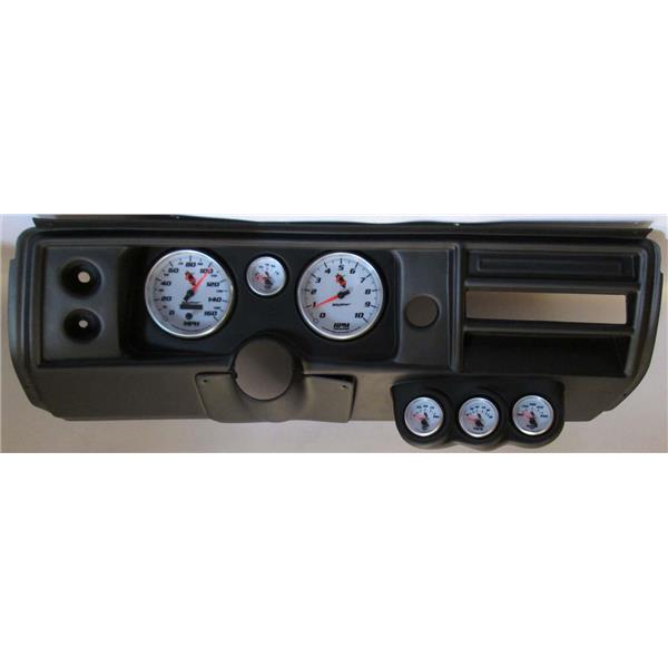 ABS UV Resistant plastic dash panel comes pre-drilled with 5 Inch for the Speedo and Tach. The 4 smaller holes are 2 1/16.