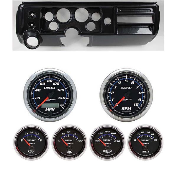 ABS UV Resistant plastic dash panel comes pre-drilled with 3 3/8 for the Speedo and Tach. The 4 smaller holes are 2 1/16.