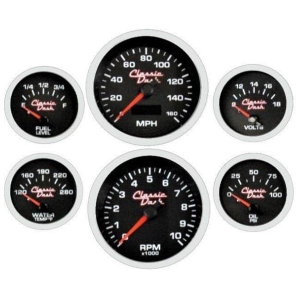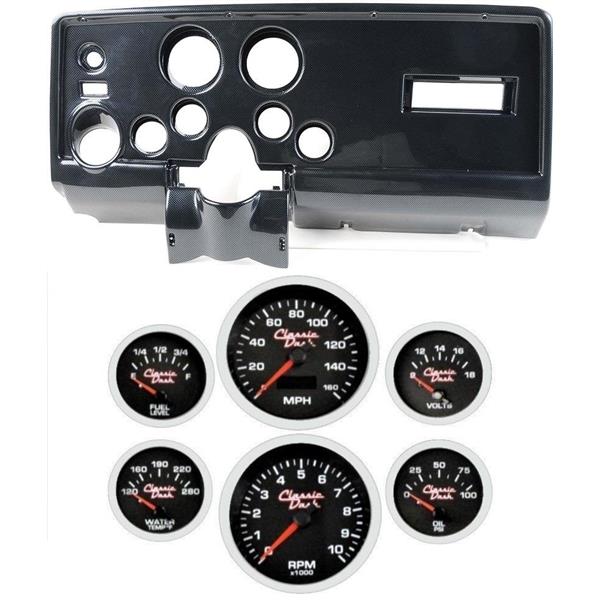 ABS UV Resistant plastic dash panel comes pre-drilled with 3 3/8 for the Speedo and Tach. The 4 smaller holes are 2 1/16.