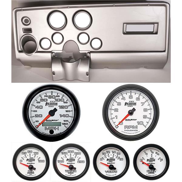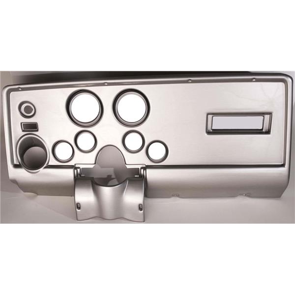 ABS UV Resistant plastic dash panel comes pre-drilled with 3 3/8 for the Speedo and Tach. The 4 smaller holes are 2 1/16.