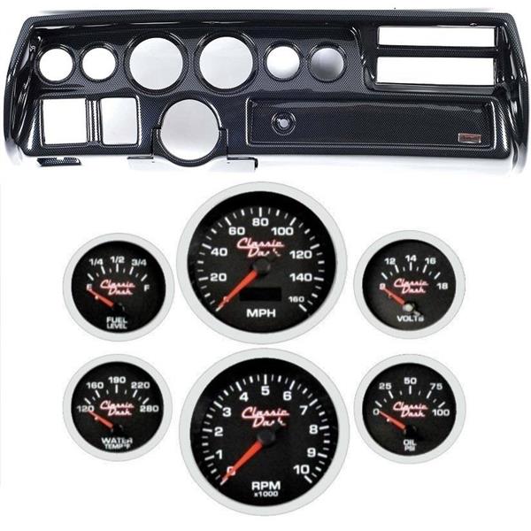 This panel replaces the 1970 - 1972 dash that came from the factory with a sweep style spedometer (large rectangular gauge). This panel WILL NOT fit the factory SS (Round Factory Gauges). If you have a SS style dash please see our other items for that direct fit panel.