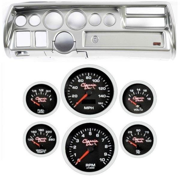 This panel replaces the 1970 - 1972 dash that came from the factory with a sweep style spedometer (large rectangular gauge). This panel WILL NOT fit the factory SS (Round Factory Gauges). If you have a SS style dash please see our other items for that direct fit panel.