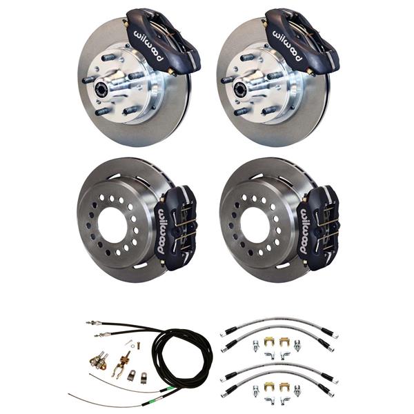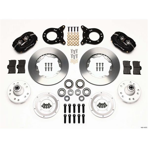 Wilwood's new limited offset FDL Pro-Series Front Hub Kits offer disc brake upgrade solutions for both OEM Disc & Drum spindles. They have completely redesigned their Pro Series line of brake kits using a larger 11 rotor and new forged aluminum hubs with the express purpose of maintaining the factory wheel position. Based on the venerable forged billet Dynalite caliper, these versatile kits are easily optioned to suit the braking requirements and style preferences for a daily driver, serious competition, or the most discriminating show enthusiast. Most vehicle applications require no modifications for installation, and provide plenty of clearance inside popular 15" wheels. FDL Pro-Series kits can be used with either manual or power boost master cylinders. Kits come complete with calipers, rotors, hub assembly, brackets and hardware.