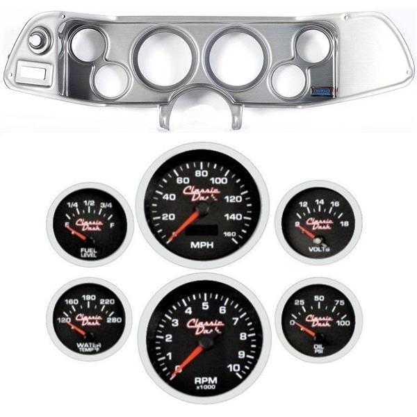 ABS UV Resistant plastic dash panel comes pre-drilled with 3 3/8 for the Speedo and Tach. The 4 smaller holes are 2 1/16.