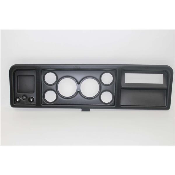 ABS UV Resistant plastic dash panel comes pre-drilled with 3 3/8 for the Speedo and Tach. The 4 smaller holes are 2 1/16.
