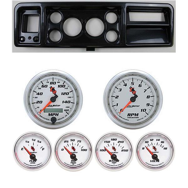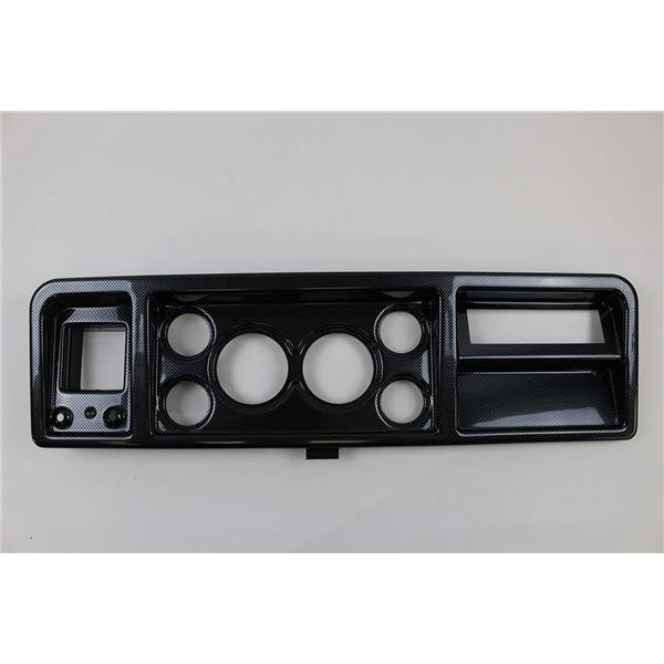 ABS UV Resistant plastic dash panel comes pre-drilled with 3 3/8 for the Speedo and Tach. The 4 smaller holes are 2 1/16.