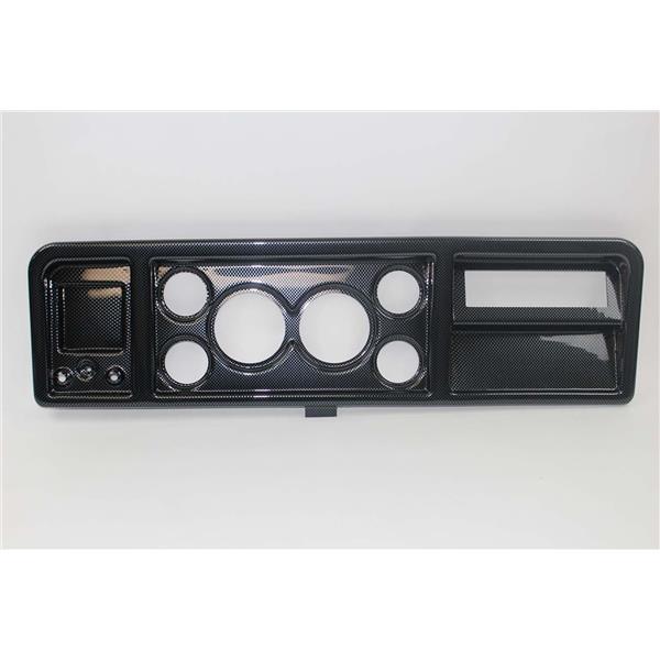 ABS UV Resistant plastic dash panel comes pre-drilled with 3 3/8 for the Speedo and Tach. The 4 smaller holes are 2 1/16.