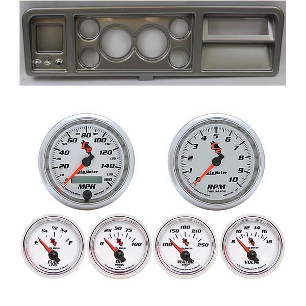 ABS UV Resistant plastic dash panel comes pre-drilled with 3 3/8 for the Speedo and Tach. The 4 smaller holes are 2 1/16.