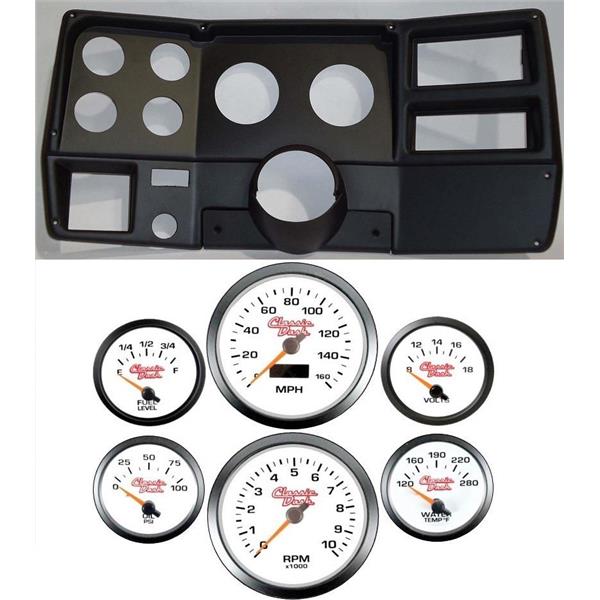 ABS UV Resistant plastic dash panel comes pre-drilled with 3 3/8 for the Speedo and Tach. The 4 smaller holes are 2 1/16.