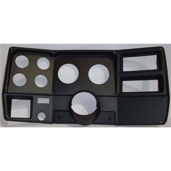 ABS UV Resistant plastic dash panel comes pre-drilled with 3 3/8 for the Speedo and Tach. The 4 smaller holes are 2 1/16.
