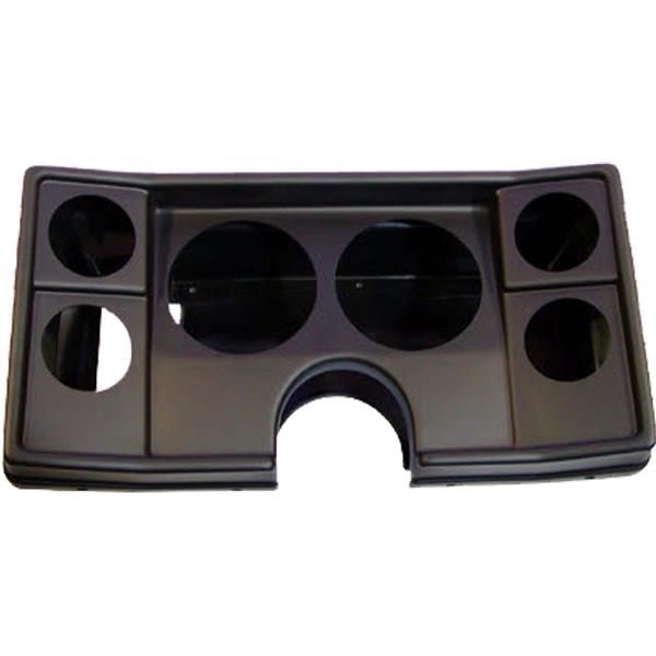 ABS UV Resistant plastic dash panel comes pre-drilled with 5 Inch for the Speedo and Tach. The 4 smaller holes are 2 5/8 Inch.