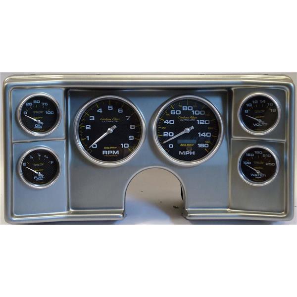 78-81 Chevy G Body Silver Dash Carrier w/ Auto Meter Carbon Gauges