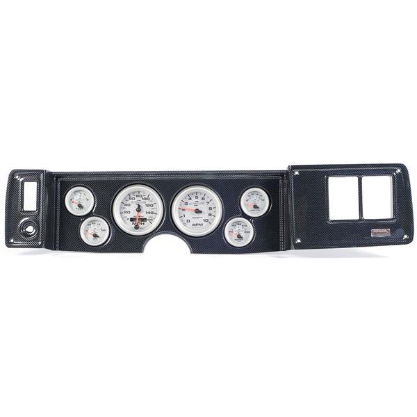 ABS UV Resistant plastic dash panel comes pre-drilled with 3 3/8 for the Speedo and Tach. The 4 smaller holes are 2 1/16.