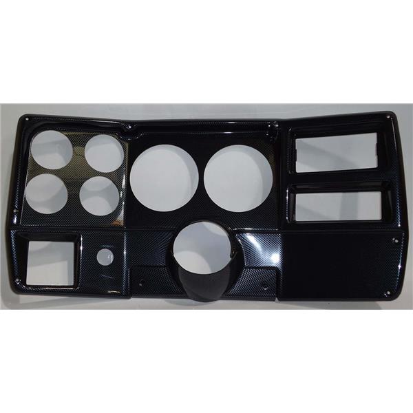 ABS UV Resistant plastic dash panel comes pre-drilled with 5 Inch for the Speedo and Tach. The 4 smaller holes are 2 5/8 Inch.