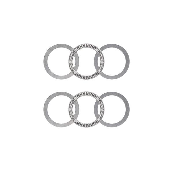 Thrust Bearing Kit for Coil-Over Shocks. 2.500 in. I.D. x 3.225 in. O.D., Pair, Roller Bearings. Includes 2 thrust bearings and 4 steel washers. Kit will work with any coil-over or coil-spring that has a 2.5 in. I.D. Sold as a pair.