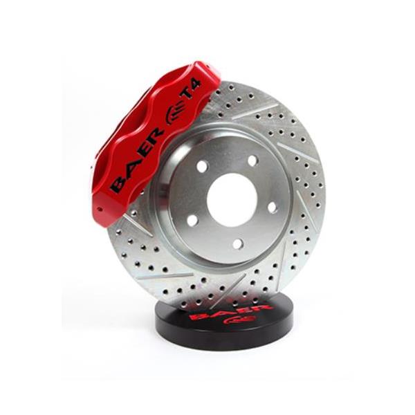 This system features the 4-piston, T4 caliper mounted to a 13", 1 piece slot, drill, zinc plated rotor. The T4 caliper has D.O.T compliant dust and weather seals and uses the popular D0749 pad type. Billet aluminum hubs come assembled with premium bearings packed with Redline synthetic grease and billet dust caps. All mounting brackets, stainless braided hoses and hardware are also included. The 13" Track4 is designed to fit most 17" or larger wheels.