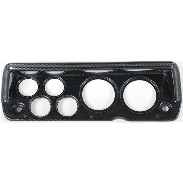 ABS UV Resistant plastic dash panel comes pre-drilled with 3 3/8 for the Speedo and Tach. The 4 smaller holes are 2 1/16.