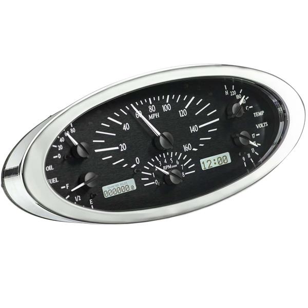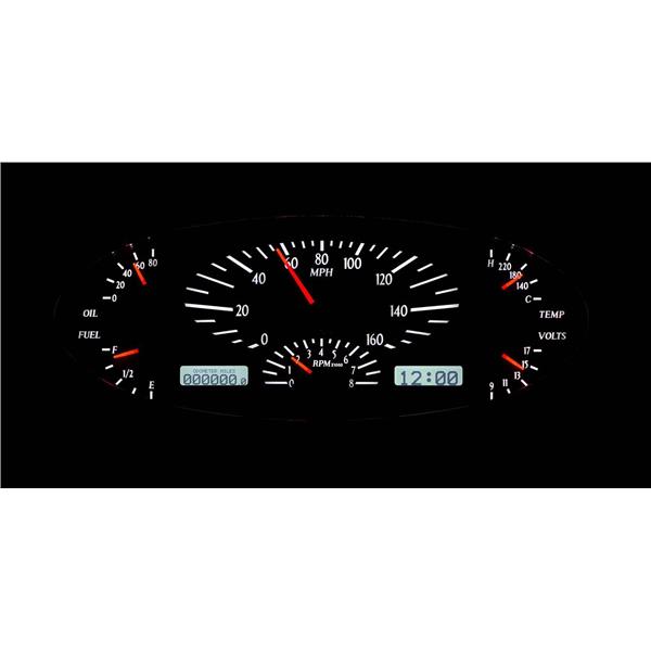 Speedometer - 0-160 MPH (optional metric version 0-255 kmh) Split scale provides resolution of a 120MPH speedometer, with a top end range of 160MPH.
