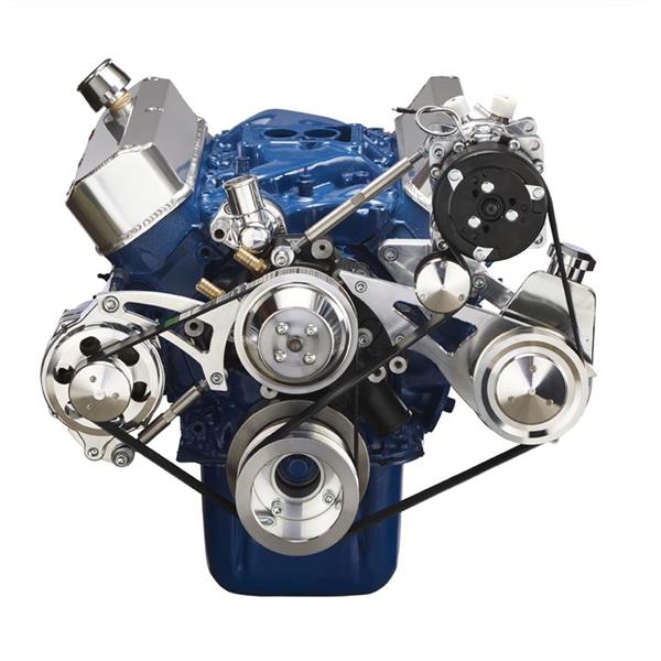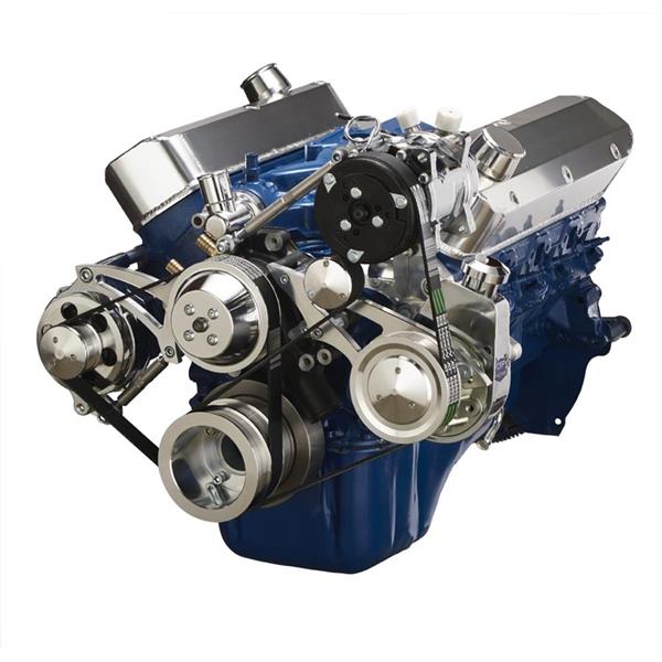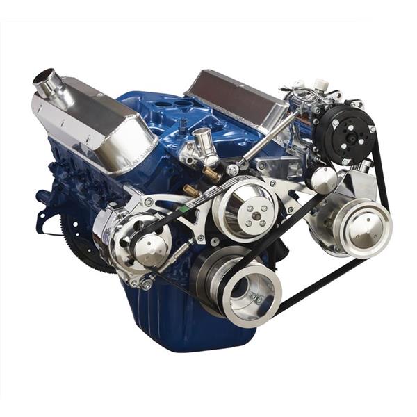 The BEASTTM 8 Track Serpentine System for Ford 289, 302 and 351W engines with alternator and power steering. Unique 8 Rib Serpentine pulley design increases grip, reduces stretching and prevents belt slippage when compared to traditional 6 Rib designs. Uses original Ford power steering pump and clockwise rotation water pump to help save you money.