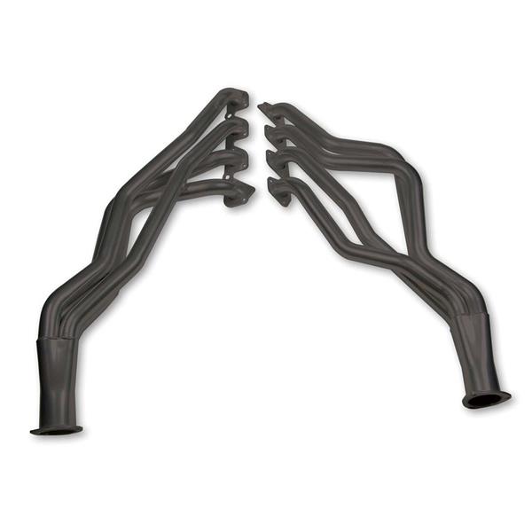 Made of durable 16 gauge mild steel tubing, the Hooker Competition header design utilizes a long transition collector to reduce back pressure and increase exhaust flow. A perfect sealing surface is assured with the 5/16" machined flanges, with welded O-ring seals. Experience has proven that this flange size is ideal to maintain header integrity and be pliable enough to seal each exhaust port. Tubing is mandrel-bent to maintain metal strength and provide consistent tube diameter at radii to maximize performance.