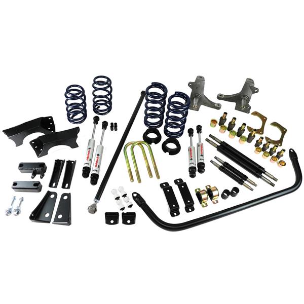 StreetGrip System for 63-72 C10. Includes Front Coil Springs, Front Swaybar, Drop Spindles, Delrin Control Arm Bushings, Front and Rear HQ Series Shocks, Rear Dual Rate Srp[ings, C-Notch kit, Full Length Adjustable Panhard Bar & Lowering Blocks.