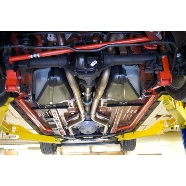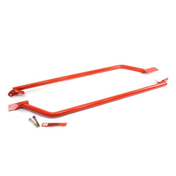 This tubular set-up tucks tight against the floor causing no ground clearance loss and can not be seen from the side of the vehicle. This weld-in only set-up ties the front and rear steel sub-frames together resulting in a stiffened and strengthened chassis. Sub-frame connectors improve your vehicles handling ability while reducing t-top squeaks, dash rattles and quarter panel flexing. This set-up is designed for auto-cross, road race as well as drag race set-ups. By connecting the front and rear sub-frames together this allows better weight transfer for improved traction and straighter launches.