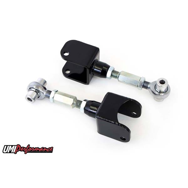 Adjustability is one the most important things when tuning in your street car's suspension. That is why UMI has taken the time to develop the ultimate "on-car" adjustable upper control arms for the rear on your Ford vehicle. There were no short cuts when manufacturing these arms, only the best materials and components money can buy were used to build UMI's "Ultimate Arms". Well known weak areas where other manufactures use mild steel have been replaced with aircraft quality 4140 chrome moly steel featuring a TIG welded construction. The upper control arm mounting points feature CNC machined 0.250" mild steel, 4140 chrome moly tube adaptors and a high strength 4140 chrome moly heat treated 1.000" solid adjuster; truly overkill for any application!