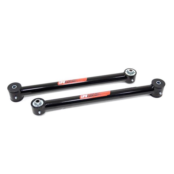 UMI's tubular lower control arms for the 1982-2002 GM F-Body utilize their Roto-Joint technology for a bind free performance and quiet comfortable ride quality. The installed UMI Roto-Jointallows rear end free movement when high handling, auto cross or road race is a concern while still being a 100% streetable setup. The installed delrin race, which lines the spherical ball, absorbs shock and road noise for a quiet and smooth operation on any street or track driven vehicle. This control arm set features polyurethane bushings on one end and UMI"s swivel Roto-Joint on the other end. This set-up is designed for street performance and street enthusiast. The polyurethane bushing end is designed to be bolted to the vehicle chassis side while the Roto-Joint attaches to the rear end side. Since the polyurethane bushings are softer they are designed to absorb more road noise and shock before it enters the passenger compartment of the vehicle. All bushing ends and Roto-Joints are greaseable and low maintenance making an excellent street setup for your cruiser!