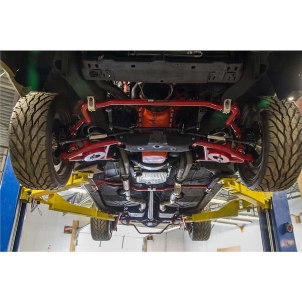 UMI lower A-Arms are fabricated from DOM tubing with CNC machined tube ends for a precision fit. They are jig built to maintain accuracy and bolt on correctly every time. All critical areas are TIG welded for superior strength and a clean look. UMI"s lower A-Arms also feature improved ball joint angle for lowered vehicles and the design provides additional tire clearance. These lower a-arms include greaseable, UMI designed and manufactured Delrin bushings. Delrin bushings offer supremely smooth suspension action and precision operation while still providing some insulation from road noise. They come preloaded with polyurethane bump stops, steering stops and premium ball joints. UMI"s extensive testing on the street, drag strip and skid pad ensures a quality product able to with stand all types of abuse. UMI lower A-Arms are designed to work with factory springs, lowering springs and coil over kits without changing the a-arms. For exceptional handling and performance UMI recommends combining with UMI upper a-arms, part # 3033-2 (see our other items). UMI Performance lower a-arms are shipped fully assembled and ready for installation. Designed and manufactured with pride in Philipsburg, PA - USA.