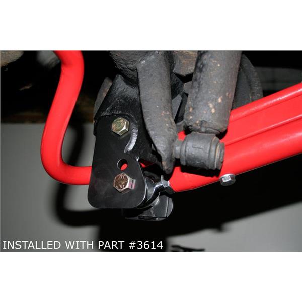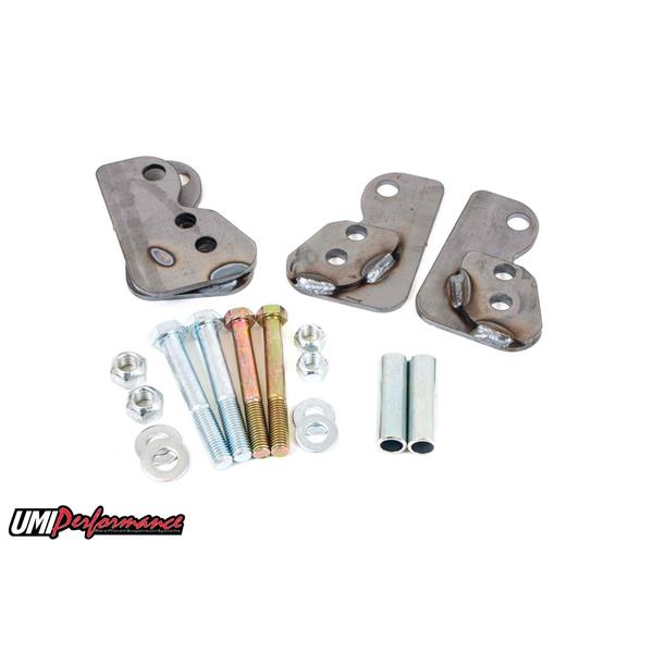 UMI Performance control arm relocation brackets quickly turn your factory or aftermarket rear control arms into a lift bar set-up. The relocation brackets are designed to lower the rear mount of the control arm changing the instant center point for improved traction. After this product installed, you will see a great increase in traction by lowering the rearward angle of the lower control arm, allowing more force to be placed on the rear tires. Relocation brackets have two settings to allow the lower control arm to be lowered either 2" or 3", depending on vehicle height. Settings are placed in a correct pattern that will allow use of all OEM control arms or any aftermarket control arms (brackets do not require a longer control arm). This product is designed to work on lowered and non-lowered vehicles.