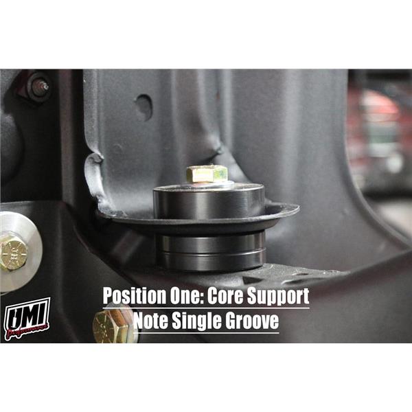 UMI’s 2664 aluminum body mounts are a direct replacement for worn out factory body mounts and are used to restore the body location to factory position. These aluminum body mounts are great for handling or drag race cars as they give the car a crisp, responsive feel while reducing subframe movement. These CNC turned body mounts fit nicely and look great with a black anodized finish. Hardware included. 100% Made In Philipsburg, PA - USA of US materials.