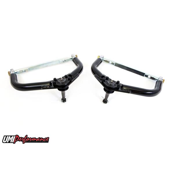 UMI’s 2nd Gen F-Body adjustable upper a-arms are race-worthy components equally at home on the street. Our P/N 2656 adjustable upper a-arms add caster to improve steering feel and reduce wandering. UMI’s single adjustable rod end design allows for caster and camber adjustment with zero or minimal shimming. The strong tubular construction and 4140 CrMo cross shaft gives peace of mind when road racing, drag racing or simply corner carving in the mountains. Available in UMI red or gloss black powder coat. 100% designed, manufactured and raced with pride in the USA.