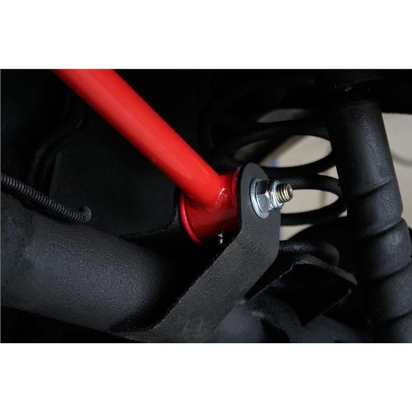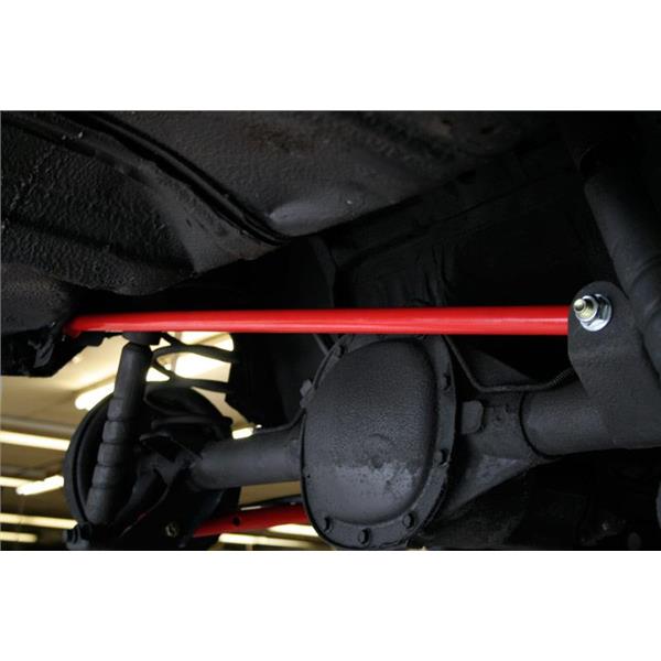 UMI's tubular on-car adjustable panhard bar replaces the flimsy factory panhard bar while adding increased strength and rear end adjustment. This is a must for rear end centering after vehicle lowering, as well as clearance for running larger tires. The supplied CNC machined double adjuster features left and right hand threads for quick and easy on-car adjustments by simply loosening two jam nuts. The spherical rod end/polyurethane bushing combination eliminates most rear end bind while not sacrificing your ride quality; this is an excellent improvement for your street or drag application. As well as easy adjustments, our heavy duty panhard bar also increases rear stability, controls side movement and body flex.